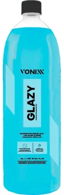 GLAZY é um produto 4 em 1, de alta tecnologia, desenvolvido para vidros em geral, que limpa, protege, condiciona e atua como redutor de riscos. O produto contém polímeros especiais que reduzem o atrito no vidro, diminuindo as chances de riscos causados por limpadores de para-brisas e movimentações dos vidros laterais. Deixa um toque liso e aspecto de vidro novo