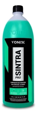 Sintra Pro é um multilimpador flotador bactericida de pH balanceado e ultra concentrado, indicado para limpeza de painéis, laterais e cantos de portas, bancadas de couro, carpetes e estofados. Promove alto poder de remoção de manchas de gordura e sujeiras diversas, além de eliminar microrganismos causadores de doenças no interior do veículo. A baixa espumação o torna ideal para ser usado em extratoras, eliminando as sujidades do interior do veículo e deixando-o limpo novamente. Sintra pro dimnui maus odores no interior do veículo, tornando-o mais saudável e livre de impurezas.